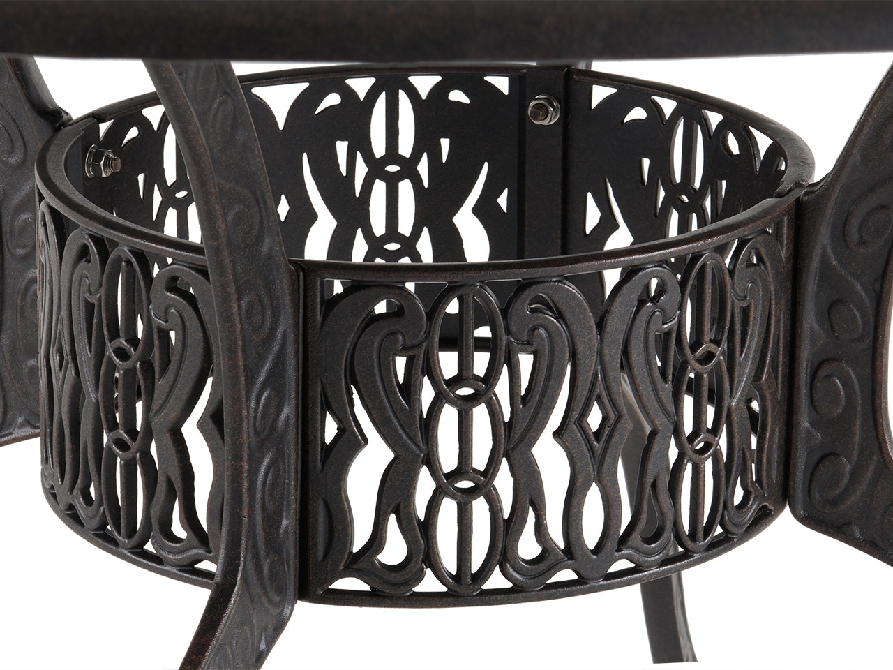 Round Cast Aluminum Patio Dining Table from c.shld.net (6) durable, walnut colored cushions. Calandra outdoor 3 piece bronze cast aluminum bar set. With opening for an umbrella, and the center of the table is removable and can be replaced with an ice bucket. San rafael round dining table 60 antique oak. Cast aluminum 60'' x 30'' rectangular acrylic top dining table. The aluminum frame is finished with a dark, rich bronze finish complementing the green slate top. Add a side table to your outdoor seating area with the round 23.8 black cast aluminum outdoor side table. Inspired by the beautiful tones of the earth and the vibrant.