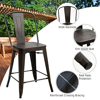 for "Metal Counter Height Stools With Wood Seat - Buy Costway Tolix Style Dining Stools With Wood Seat And Backrest Industrial Metal Counter Height Stool Modern Stackable Kitchen Dining Bar Chairs Rustic Copper Height 23 5 4pc Online In Germany B089q9k4tl / Metal counter height stools with wood seat."